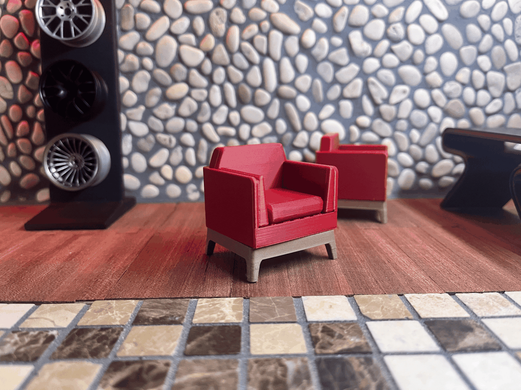 Hoàn thiện khu vực nghỉ ngơi hoặc phòng chờ trong sa bàn của bạn với mẫu Ghế Sofa đơn hiện đại. Đây là phụ kiện nhỏ gọn nhưng mang lại hiệu ứng thị giác cực lớn, giúp không gian trưng bày xe trở nên chân thực và chuyên nghiệp hơn.