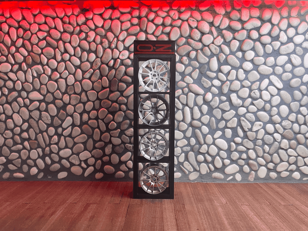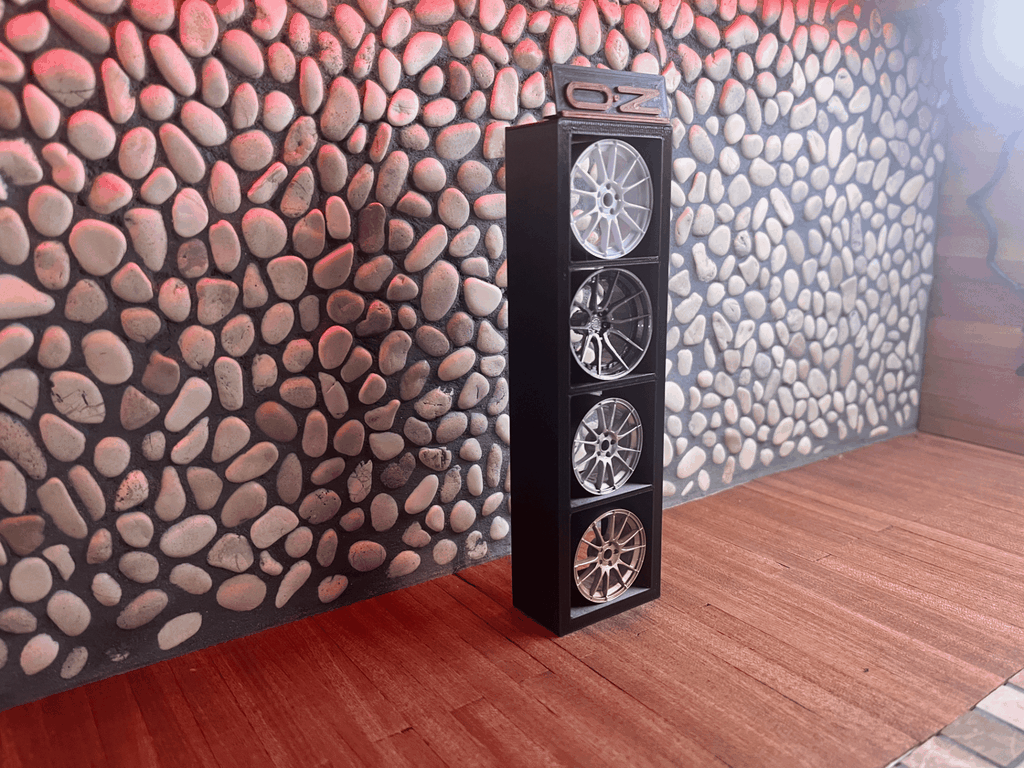 Tôn vinh vẻ đẹp của những bộ mâm độ JDM với Kệ trưng bày mâm xe dạng đứng. Đây là món phụ kiện decor không thể thiếu để tạo điểm nhấn chuyên nghiệp cho văn phòng gara hoặc khu vực xưởng dịch vụ trong sa bàn của bạn.