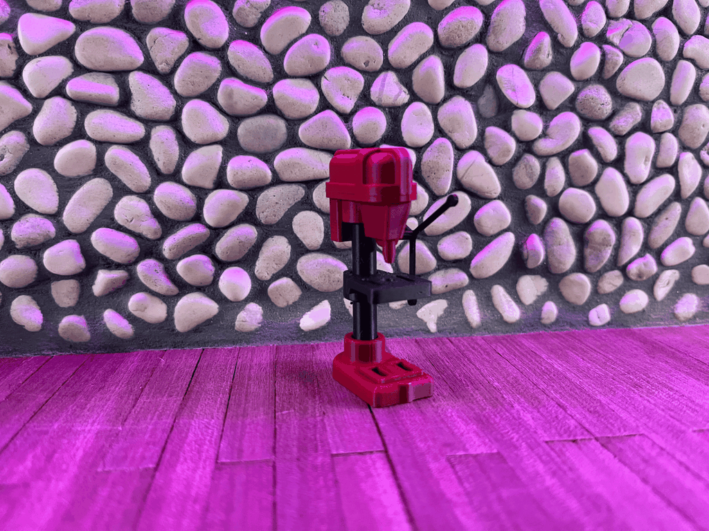 Hoàn thiện khu vực chế tác cho gara của bạn với mô hình Máy khoan bàn (Bench Drill Press). Đây là món phụ kiện decor cực chất, giúp tái hiện chân thực góc làm việc của một thợ độ xe thực thụ trong các dự án diorama.